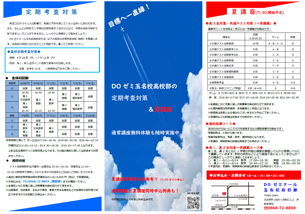 玉名高校など荒玉地区の高校対応のテスト対策・夏講座開講予定!!割引キャンペーンも実施中!
